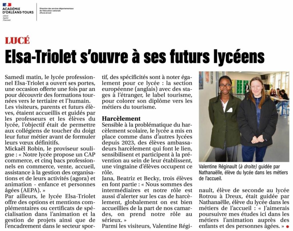 Venez nombreux le samedi 7 Mars 2026 de 9h à 12h30 pour la journée Portes Ouvertes du Lycée Elsa Triolet. Venez rencontrer les professeurs ainsi que le personnel de l’établissement pour en apprendre plus sur nos différentes formations !